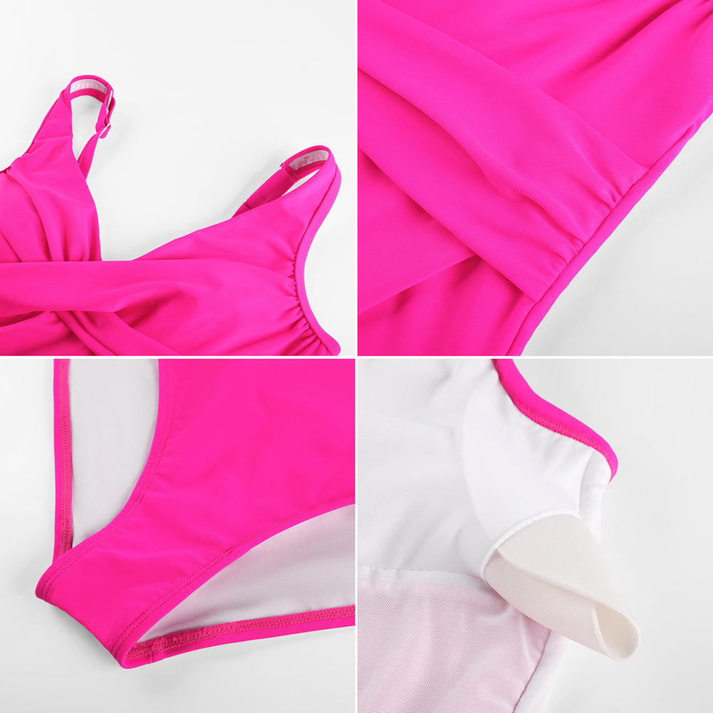 False Overlapping Design On The Front of The Plus Size Swimsuits