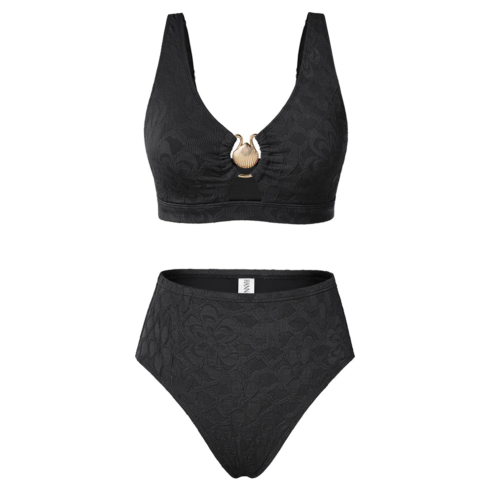 Hanna Nikole Women High Waisted Bikini Sets, 2 Piece Swimsuits Tummy Control, Textured Bathing Suit, Metal Cutout Swimwear