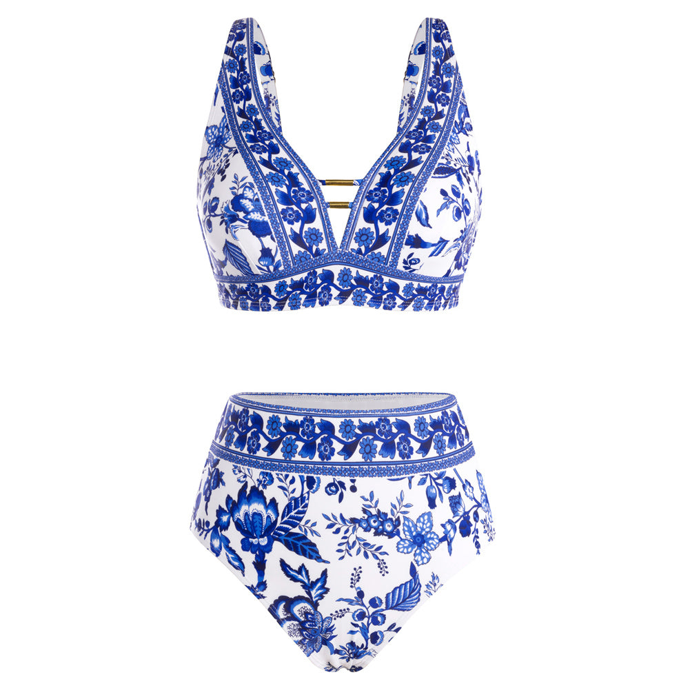 Hanna Nikole Womens High Waisted Bikini Sets Floral Print, 2 Piece Swimsuits Cutout, V Neck Bathing Suits Sexy Swimwear